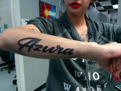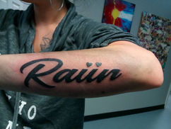 I specialize in lettering and color work, and I’ve been exploring bio-organic designs as well. I also love tattooing flowers and nature-inspired pieces, but I’m open to just about anything that challenges me and lets me create something meaningful for my clients.